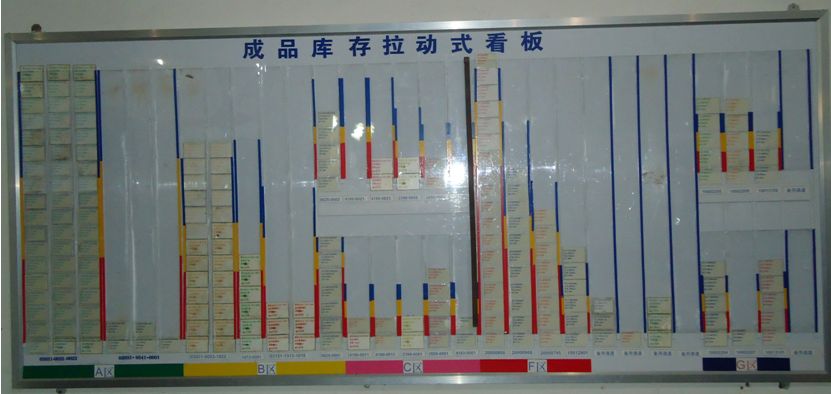 成品超級市場,包裝完成後成品入成品倉,上超級市場看板,客戶拉動資訊直接回饋到看板上,與毛胚超級市場對接,建立JIT生產(chǎn)模式,實現(xiàn)準時化生產(chǎn)作業(yè)。